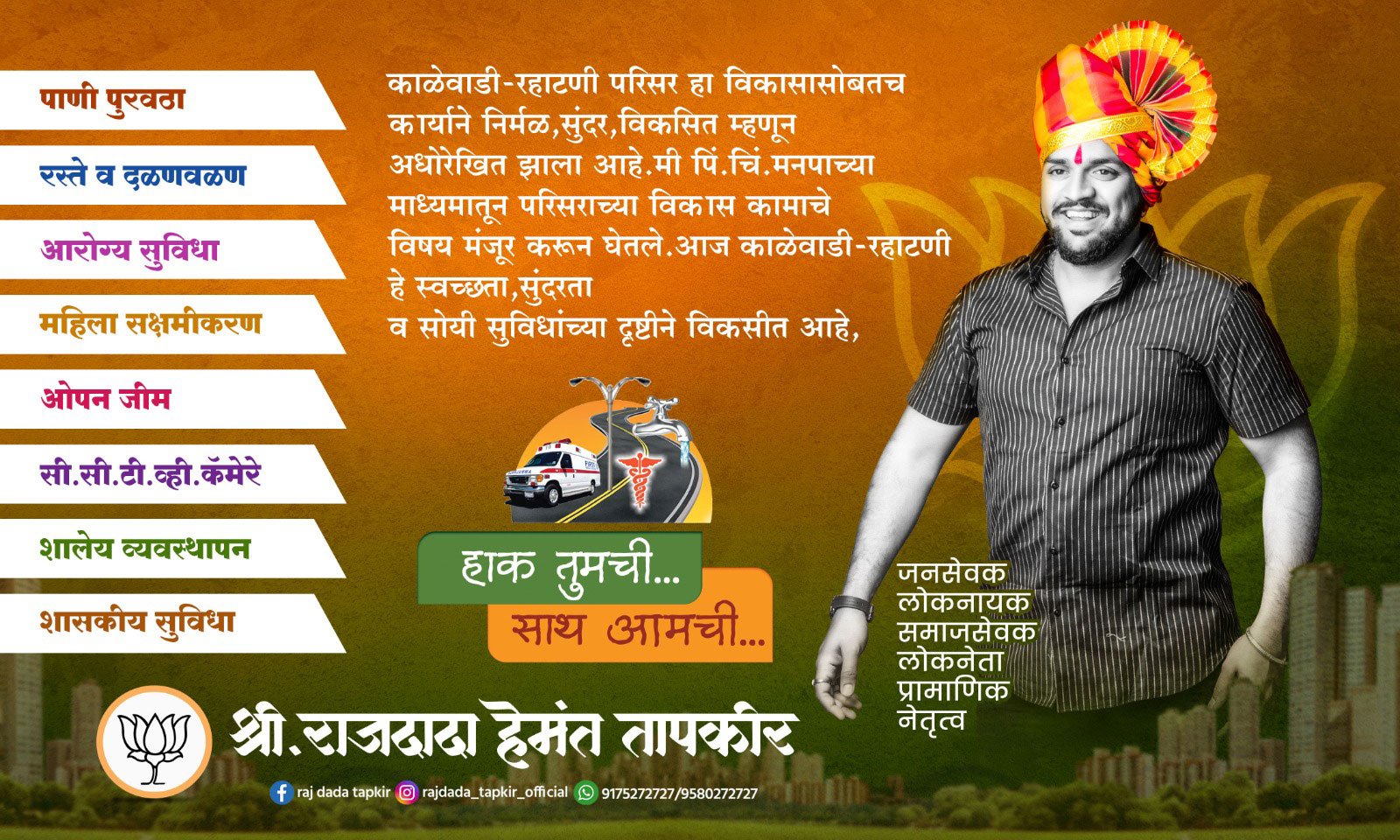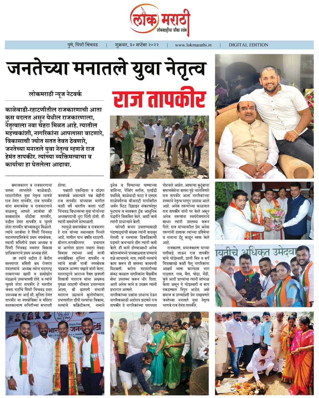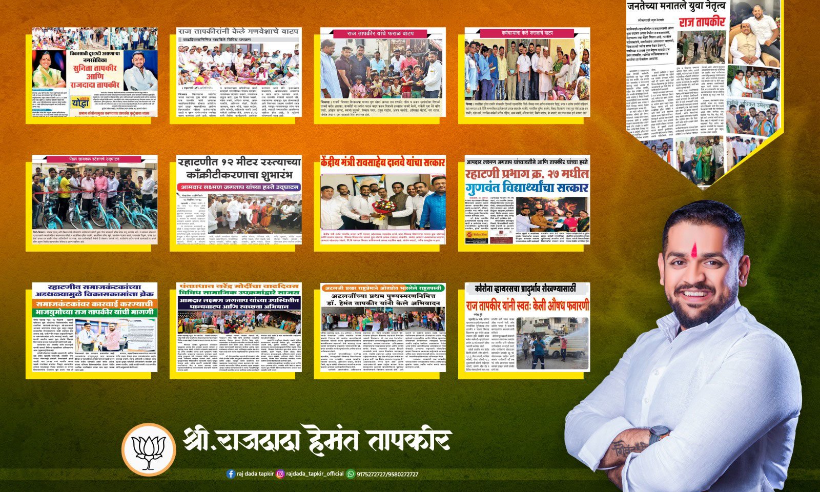 नागरिकांच्या प्रश्नांना प्राधान्य देऊन नागरिकासाठी अहोरात्र झटणारे राज तापकीर हे नागरिकांच्या घराघरात पोहचले आहेत. आपल्या कुटूंचाचा समाजसेवेचा वारसा पुढे चालविणारे राज तापकीर आता नागरिकांच्या हक्काचे नेतृत्व म्हणून उदयास आले आहे. अनेक तरूणांच्या काळजात राज तापकीर यांनी घर केले असून अनेक तरूणांना स्वयंरोजगाराचे साधन त्यांनी उपलब्ध करून दिले. राज यांच्यावरील प्रेम अनेक तरूणांनी हातावर त्यांच्या प्रतिमेचा व नावाचा टॅटू काढून व्यक्त केले आहे.